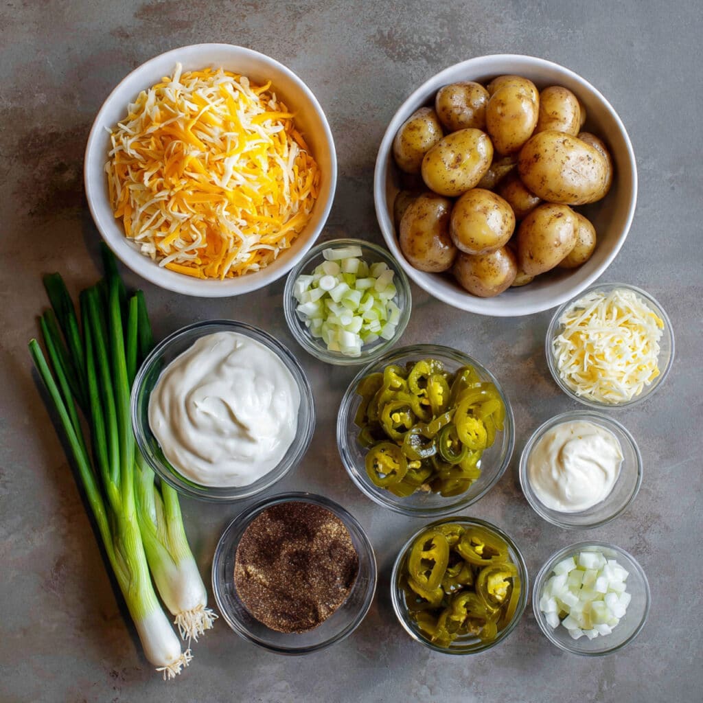 Cheddar Cheese: Aged cheddar brings sharpness and richness that complements the neutral base of the potatoes.