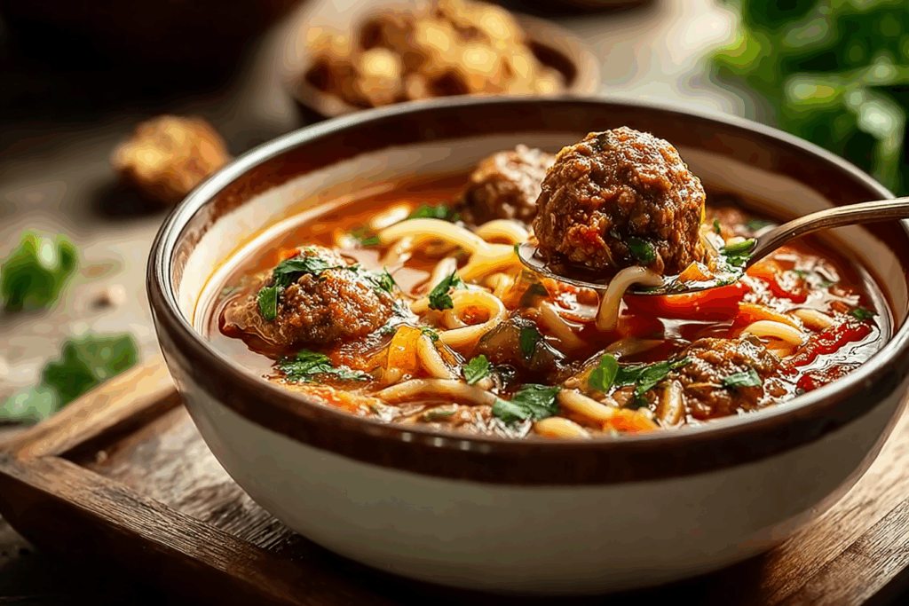 A hearty and comforting Italian Meatball Soup made with tender homemade meatballs, fresh vegetables, and a rich tomato broth. Perfect for cozy nights and family dinners, this recipe delivers authentic Italian warmth in every spoonful.