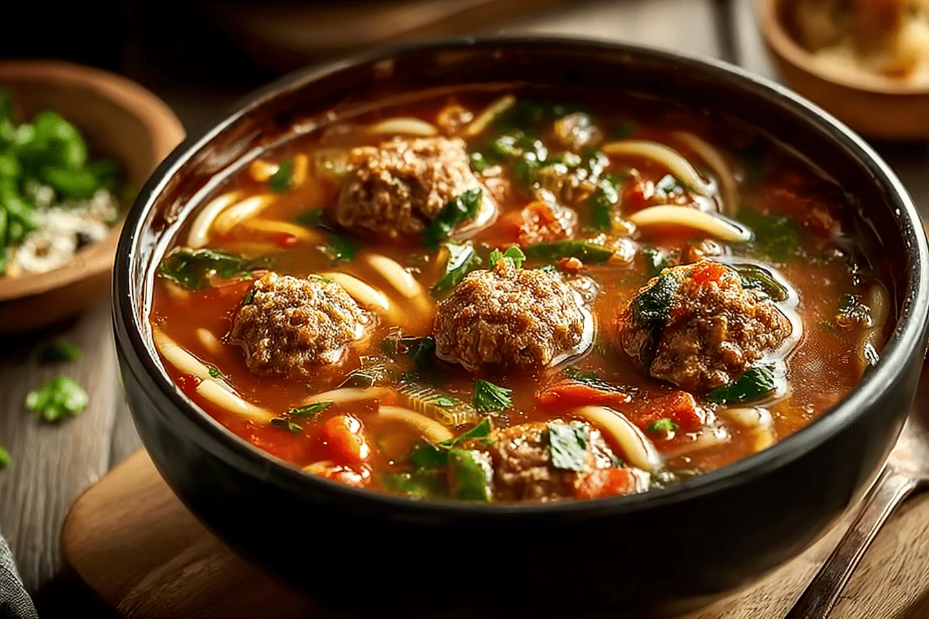 A hearty and comforting Italian Meatball Soup made with tender homemade meatballs, fresh vegetables, and a rich tomato broth. Perfect for cozy nights and family dinners, this recipe delivers authentic Italian warmth in every spoonful.