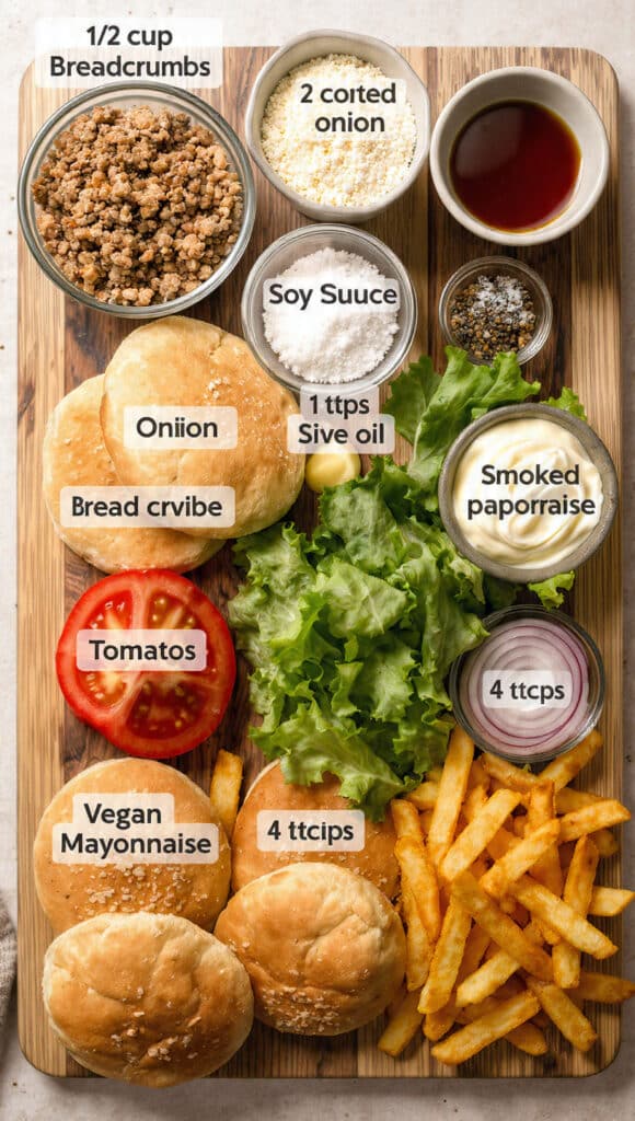 - Breadcrumbs: ½ cup, to bind the patties and add structure.