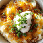 If comfort had a flavor, it would taste exactly like a spoonful of these loaded mashed potatoes. Creamy, fluffy potatoes swirled with butter and sour cream, topped with gooey melted cheese, crispy caramelized onions, and a sprinkle of fresh green onions. Every bite is rich, indulgent, and perfect for cozy nights or festive gatherings.