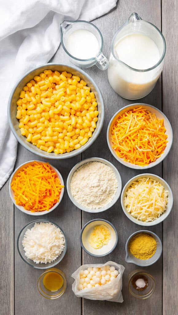 - Whole Milk: 4 cups. The creamy base of the cheese sauce.