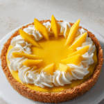 There is something magical about combining fruit and cream. The sweetness of mangoes, especially when they are perfectly ripe, creates a natural richness that pairs beautifully with a velvety cream base. The golden crust adds that subtle crunch which balances everything out. When you slice into it, you see that silky mango layer resting gently inside the crust, and it is honestly hard not to sneak a bite before serving.