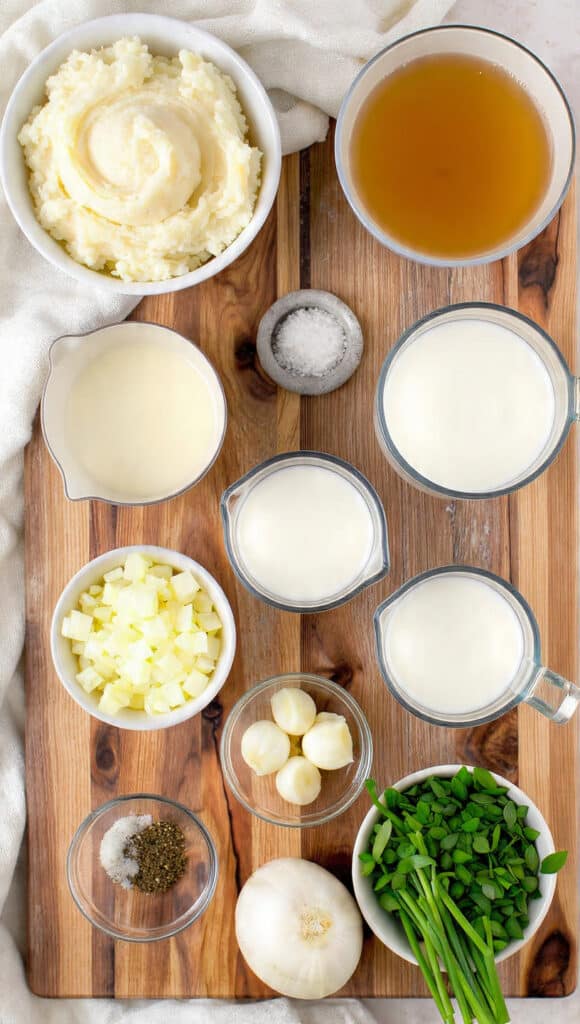 Keywords: mashed potato soup, creamy potato soup, leftover mashed potatoes, easy comfort soup, vegetarian soup recipe