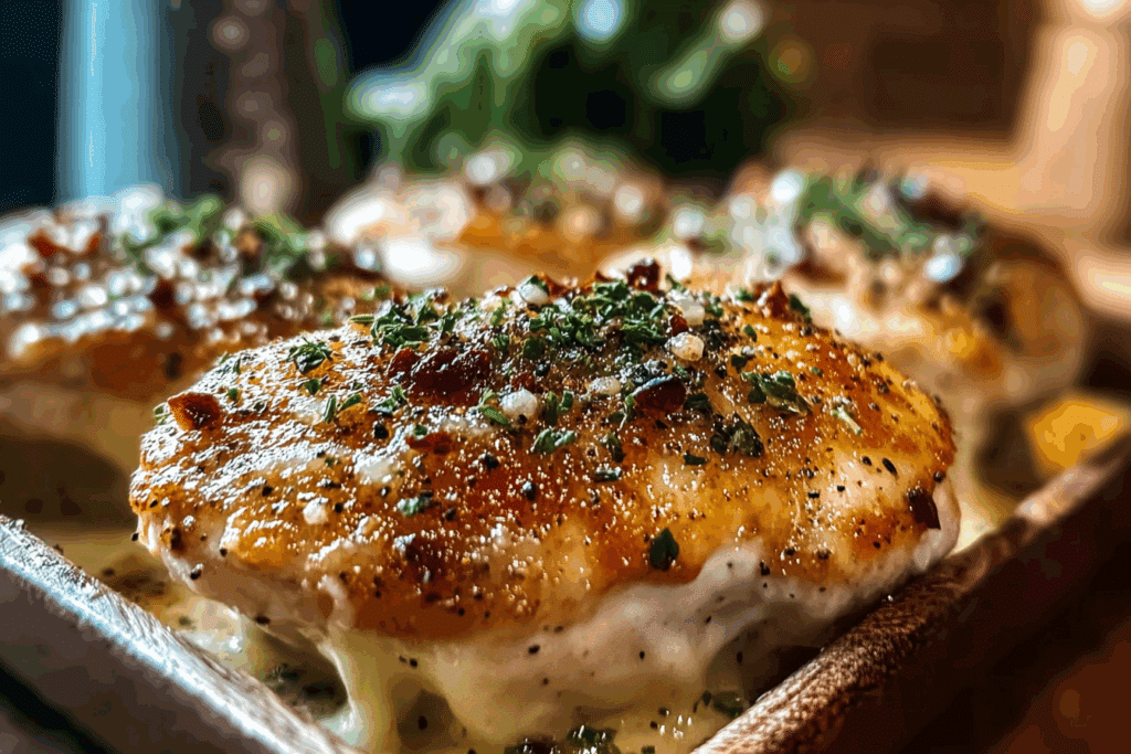 This dish’s secret lies in contrast: the creamy sauce gently soaks into the chicken as it bakes, keeping it moist, while the Parmesan crisps on top, adding a subtle crunch. Each bite combines silky smoothness with rich, savory depth — truly melt-in-your-mouth perfection.
