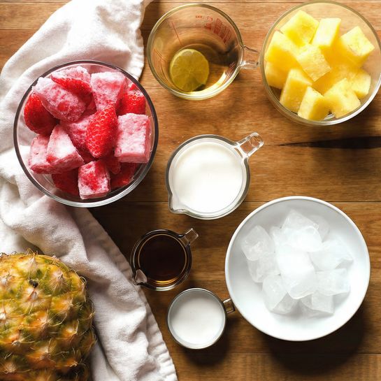 - Garnish with a wedge of pineapple or a whole strawberry for a tropical finish.