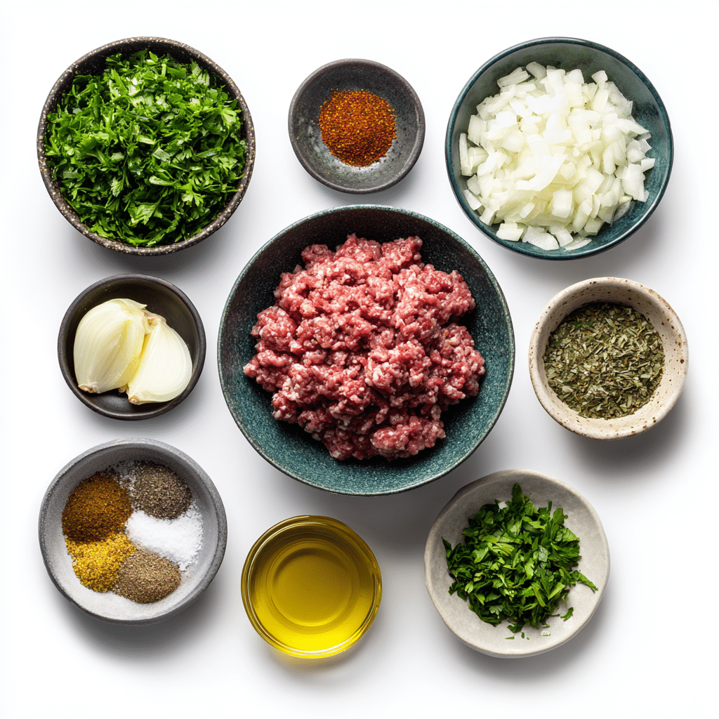 The secret to kofta lies in the harmony between fresh herbs, warm spices, and quality meat. Here’s what you’ll need: