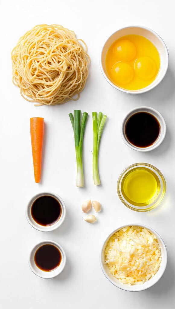 - Assemble the Dish: Push garlic to the side, pour in the beaten eggs, and scramble until just set. Add cooked noodles and sliced carrot, tossing well.