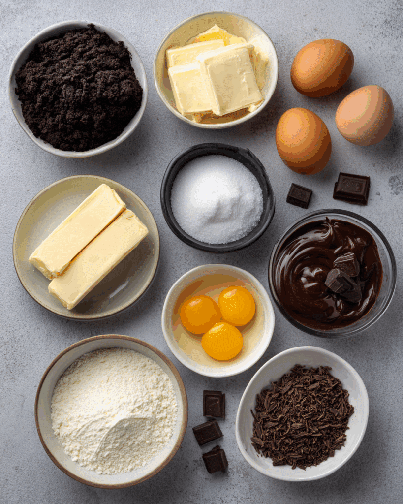 Now let’s gather the stars of the show. Each ingredient plays an important role in creating the perfect balance of creamy, sweet, and slightly bitter chocolate goodness.