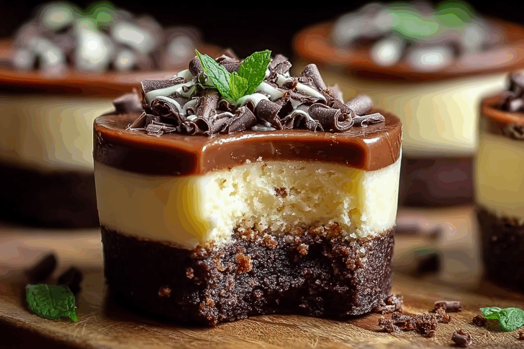 Keywords: mini cheesecakes, chocolate dessert, layered cheesecake, easy dessert, party treats