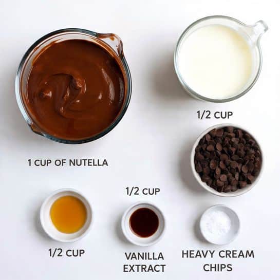 - Nutella: 1 cup. The star of the show. Creamy, chocolatey, and packed with hazelnut flavor.