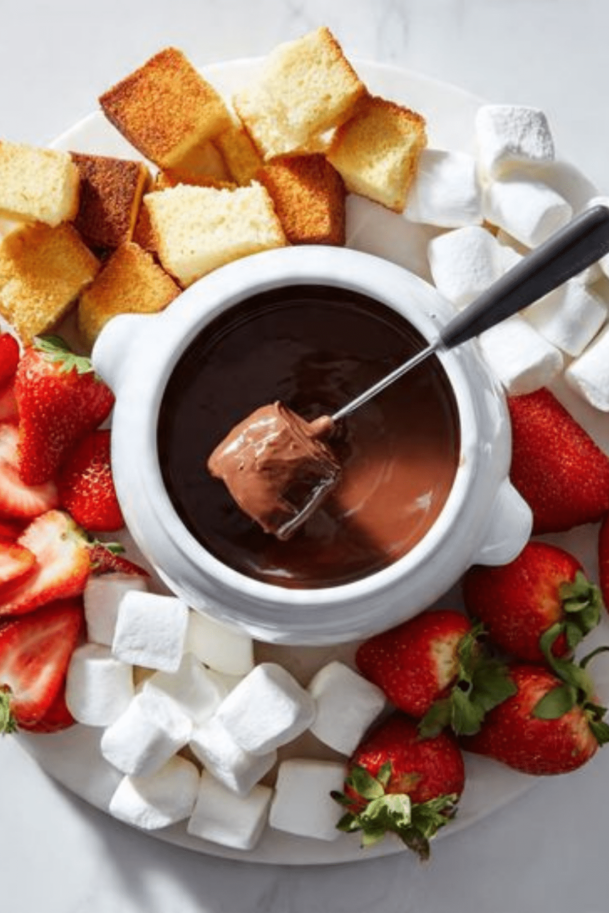 Arrange dippable items like fruits, marshmallows, cookies, or pound cake on a platter around the fondue. - Cook to Perfection: