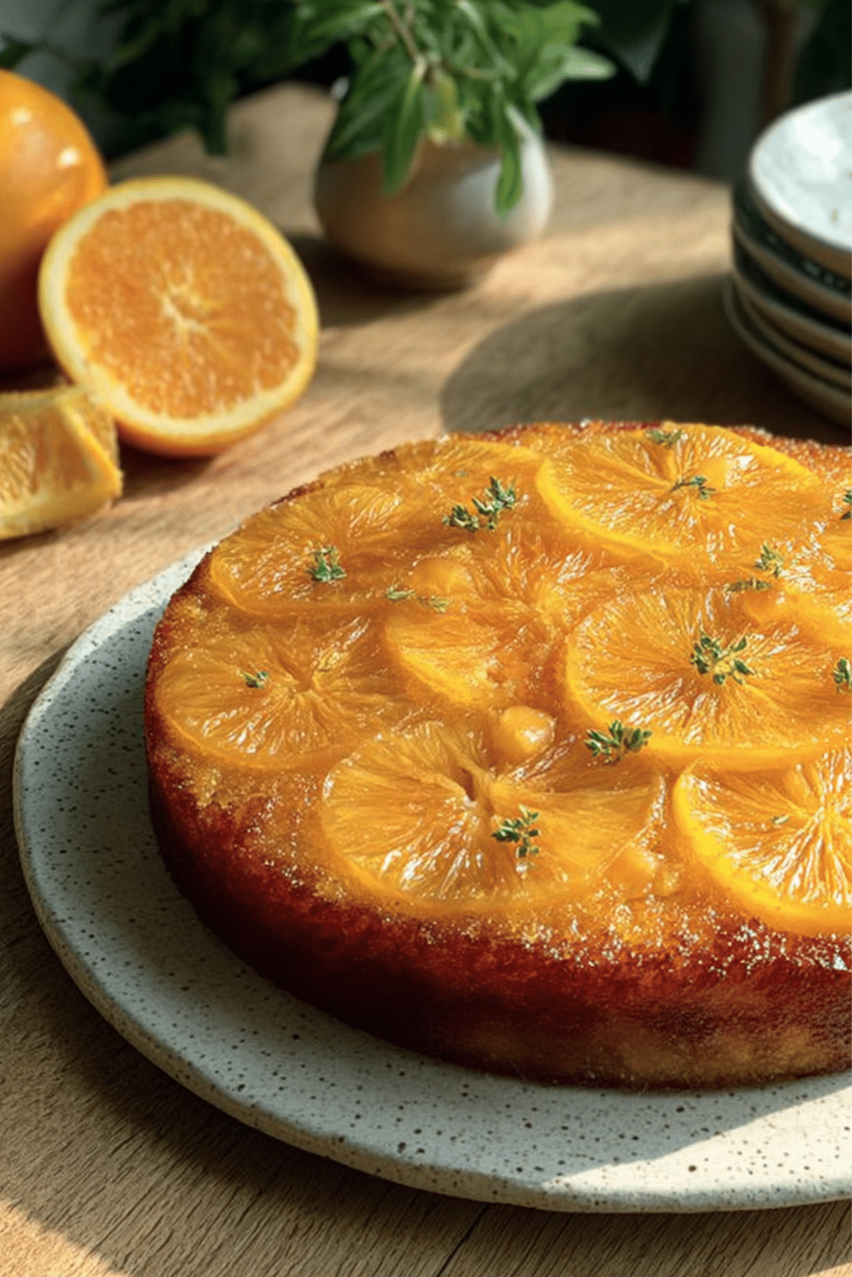 Keywords: orange cake, upside-down cake, citrus dessert, caramelized oranges, easy dessert