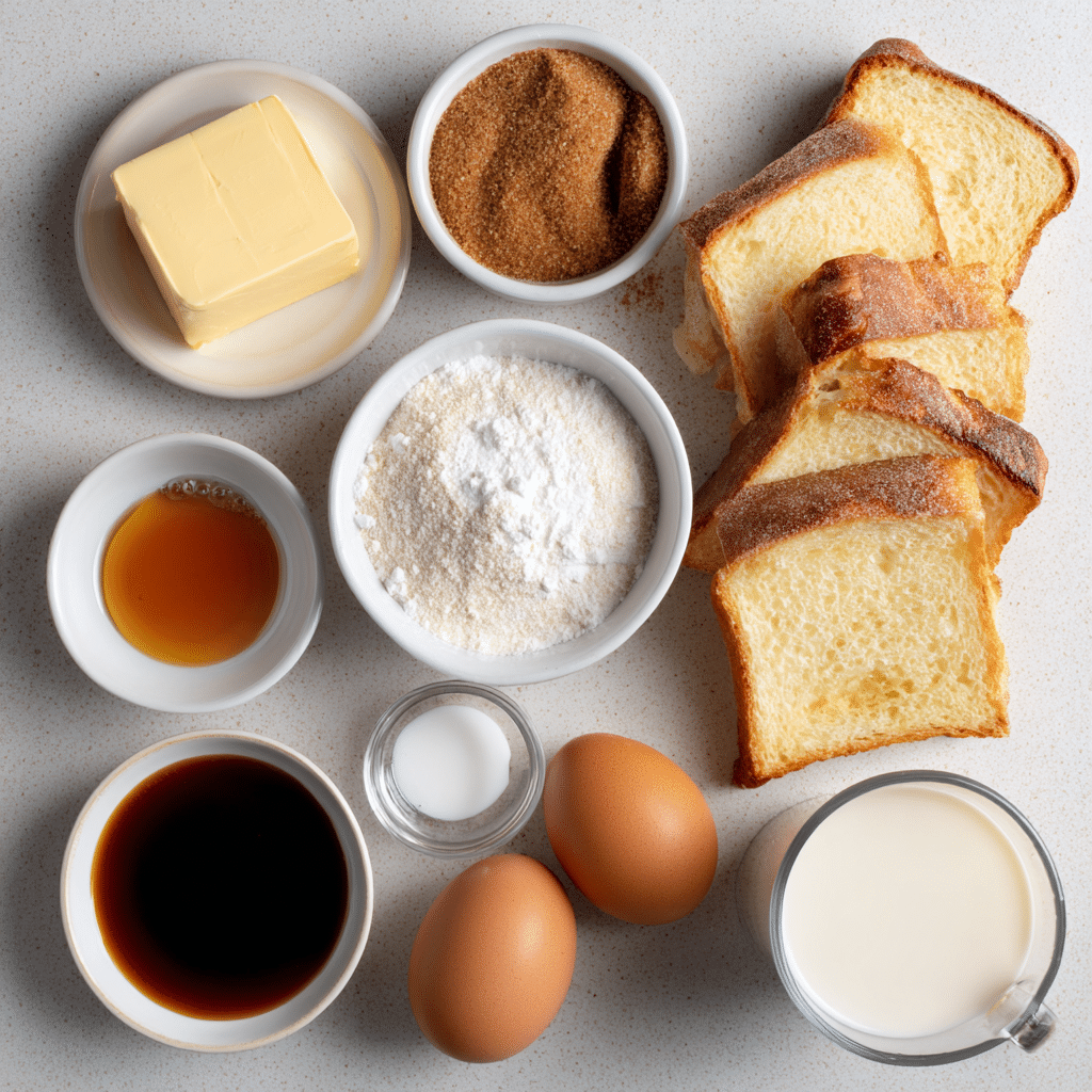 - French Bread or Brioche: 1 loaf, sliced 1-inch thick — the perfect base for soaking up the custard.