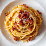 A classic Roman pasta dish made with spaghetti, crispy guanciale, Pecorino Romano, and freshly cracked black pepper, creating a silky, creamy sauce without any cream.