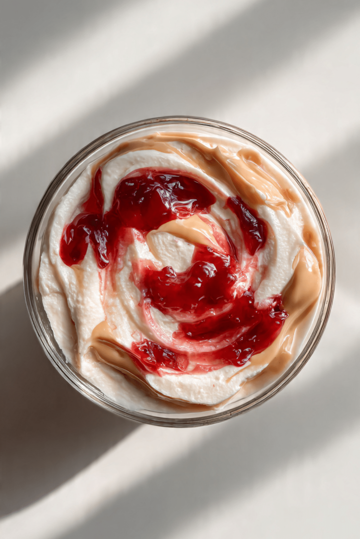 A creamy, nostalgic dessert that combines smooth peanut butter, vanilla pudding, and sweet strawberry jelly in comforting layers.