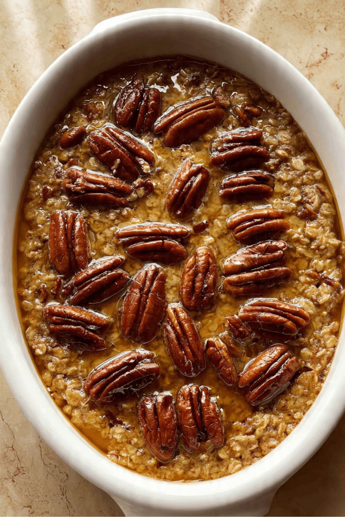 Serve it warm with extra pecans, fresh fruit, a swirl of honey, or even a spoonful of yogurt. It pairs beautifully with a cup of tea or coffee for a satisfying morning.