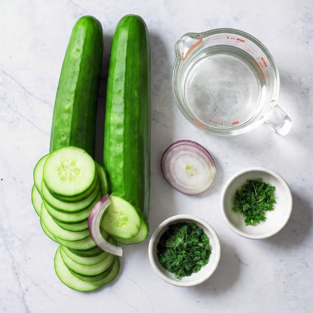 - Red Onion: 1 small red onion, thinly sliced. Adds sharpness and a little bite to contrast the cool cucumbers.