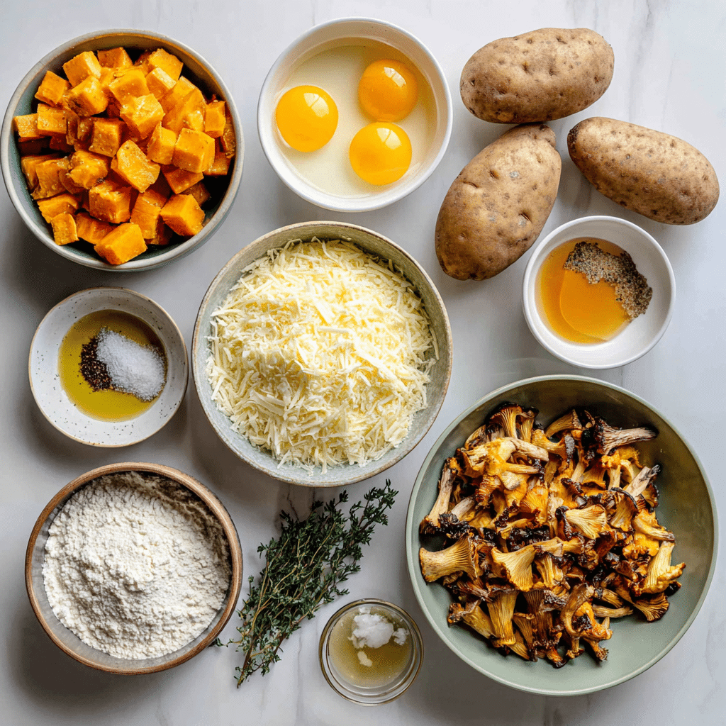 Ingredients in Potato Waffles with Roasted Pumpkin and Chanterelles