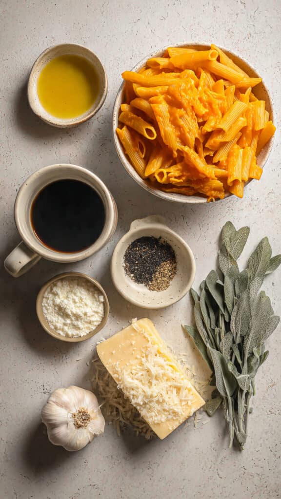 A cozy and creamy pasta dish made with smooth pumpkin puree, garlic, cream, and parmesan, perfect for an easy and comforting meal.