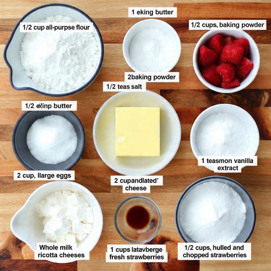 - Whole Milk Ricotta Cheese: 1 cup – Makes the cake moist and creamy.