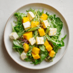 A fresh and vibrant salad that brings together juicy mango, crisp greens, and creamy cheese with a light citrus dressing. Perfect for warm days, quick lunches, or an easy side that feels special without any effort.