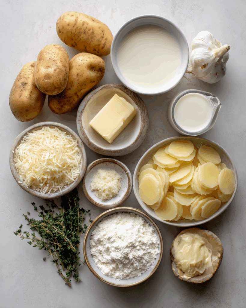 - Russet Potatoes: 3 pounds, thinly sliced These starchy potatoes create creamy layers.