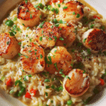 A rich and creamy shrimp and scallop risotto that brings restaurant-quality flavor straight to your kitchen. Tender seafood and velvety rice come together in this elegant yet comforting dish.