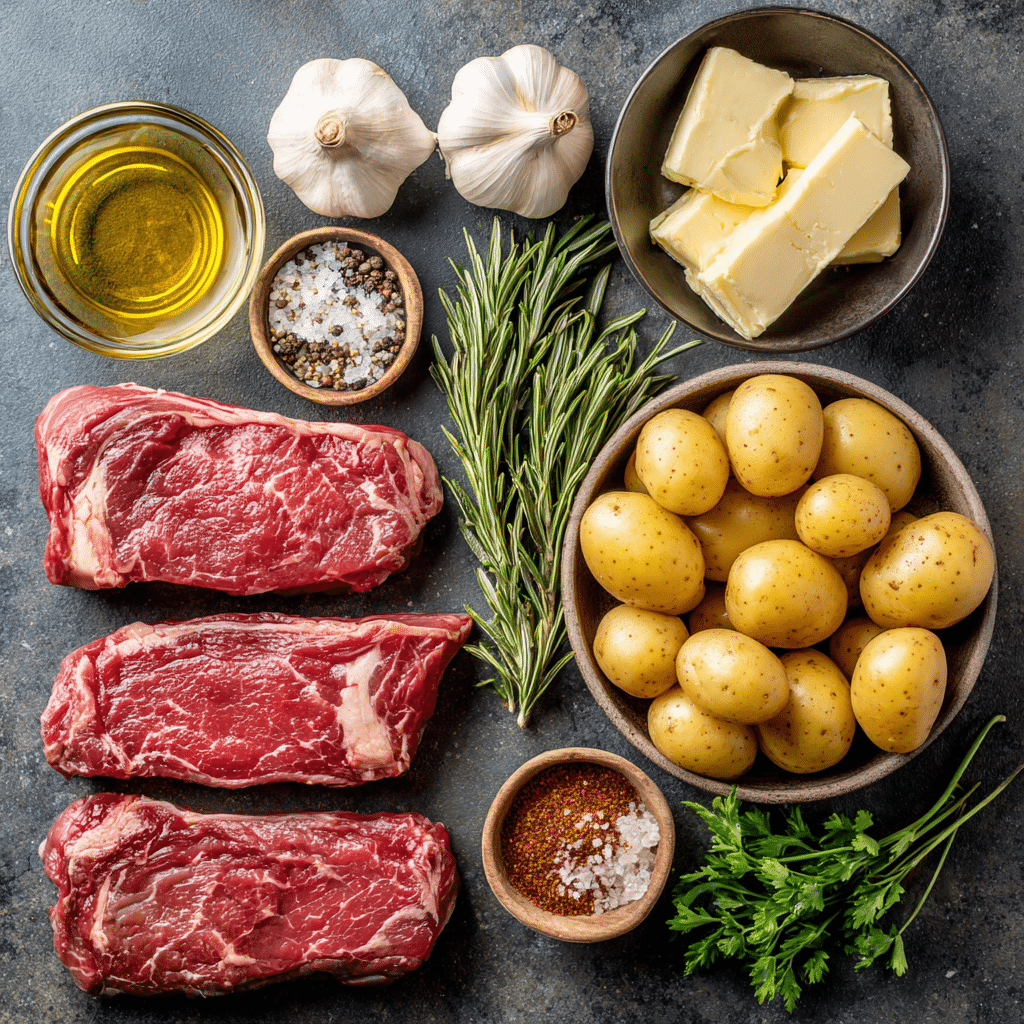 The steak should be tender and juicy with a crispy, caramelized crust. The potatoes turn golden and slightly crisp, soaking up all the buttery, garlicky flavors. Together, they create a balance of crunch, tenderness, and richness that’s absolutely irresistible.