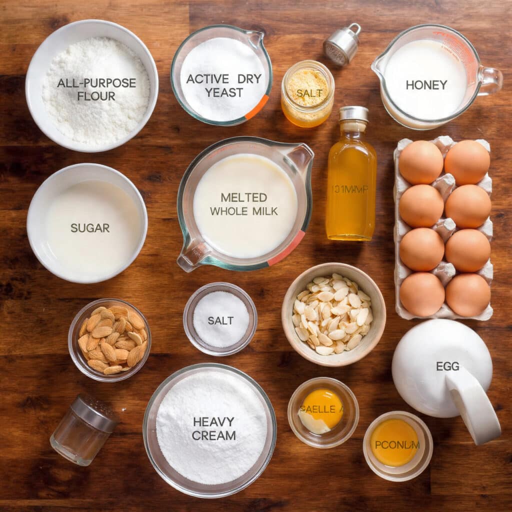 - Honey: ⅓ cup — Key for that signature sticky-sweet almond topping.