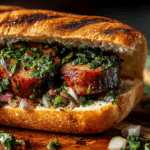 There’s something magical about the moment when smoky, juicy sausage meets the zesty freshness of chimichurri. Each bite is a perfect harmony of bold flavors, tender bread, and bright herbs that dance across your taste buds. This sandwich isn’t just food, it’s an experience worth savoring. The crunch of the toasted roll, the juicy snap of the sausage, and the garlicky-herb kiss of chimichurri will make you want to sink into your chair and smile after every mouthful.