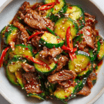 There’s something wonderfully surprising about the way crisp cucumbers and tender beef come together in this sizzling stir-fry. Sogogi Oi Bokkeum is that weeknight hero you never saw coming. The dish bursts with contrast — cool crunch against savory richness, mild heat dancing with umami depth. It’s fast, fresh, and full of comforting Korean flavors. Picture the glossy beef glistening in a soy-based glaze, the cucumbers still snappy, and the scent of sesame and garlic rising from the pan. Trust me, you’re going to love this.