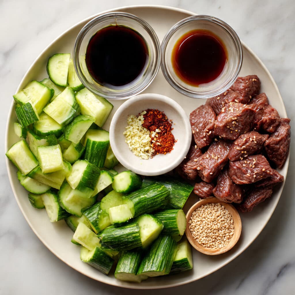 What makes this dish so satisfying is the contrast in textures and the harmony of bold flavors. The beef is tender and savory, while the cucumbers stay crisp and juicy. The garlic and chili build a warm backbone, and the sesame oil ties everything together with a deep, nutty richness. Every bite is balanced and addictive.