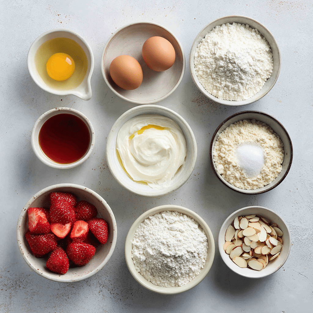 Ingredients in Strawberry, Almond and Yogurt Cake