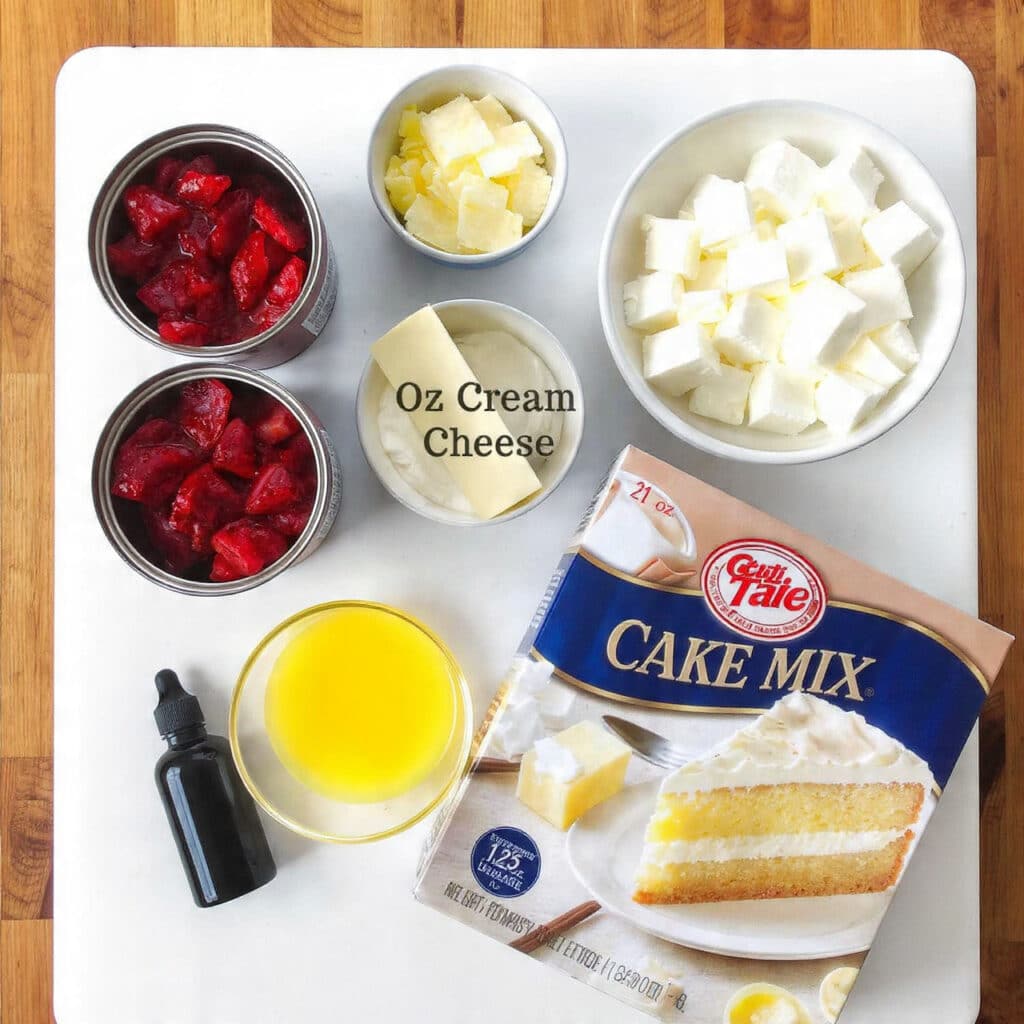 - Strawberry Pie Filling: 2 cans (21 oz each) — Adds a juicy, sweet-tart fruit base that soaks into the cake layer.