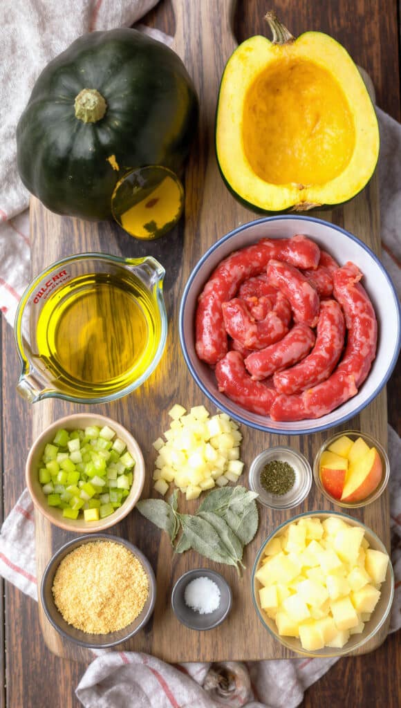 - Acorn Squash: 2 medium-sized, halved and seeds removed. These create your edible serving bowls and bring natural sweetness.