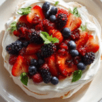 There’s something magical about the way a pavlova carries the season on its cloud-like base. Crisp on the outside, soft like a marshmallow on the inside, and crowned with a vibrant mix of berries both fresh and warm from the grill, this dessert captures the very essence of summer. As the meringue crumbles under your fork and the juices of the berries blend with airy whipped cream, you’re treated to a bite that’s light, indulgent, and unforgettable.