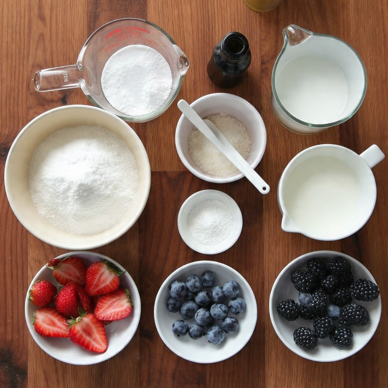 Mixing bowls: For separating eggs, whipping cream, and prepping berries.