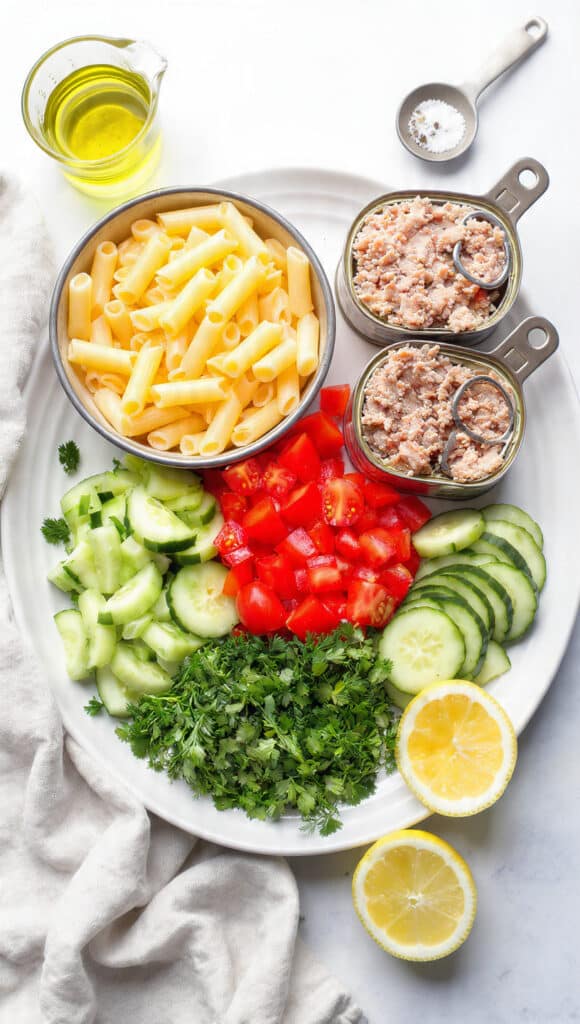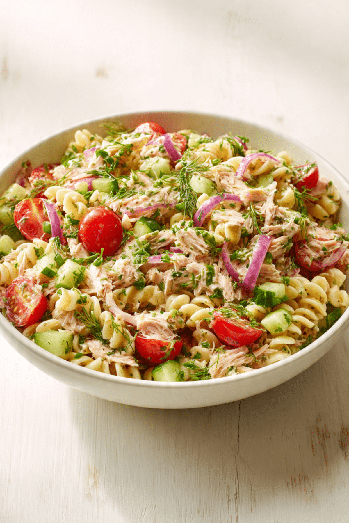 A light and refreshing tuna pasta salad packed with fresh herbs, crisp vegetables, and a bright lemon olive oil dressing. Perfect for warm days, quick lunches, or easy meal prep.