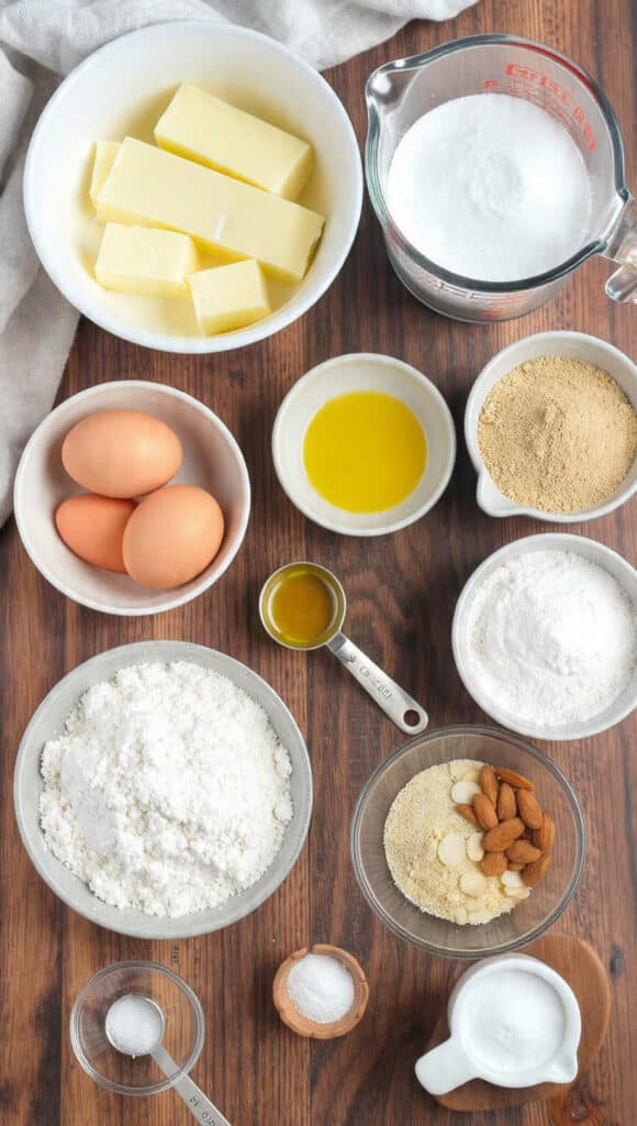 - Combine Ingredients: In a mixing bowl, cream the butter and sugar until light and fluffy. Add eggs one at a time, then mix in almond extract. In a separate bowl, whisk flour, baking powder, salt, and ground almonds, then gradually add to the wet mixture.