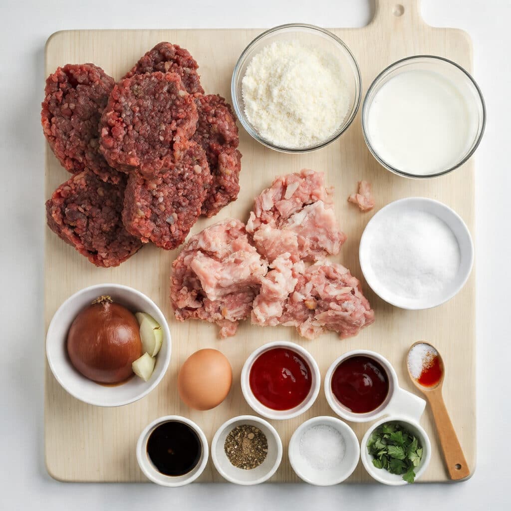 Ground pork: Helps keep the meatloaf tender and juicy, balancing the beef.