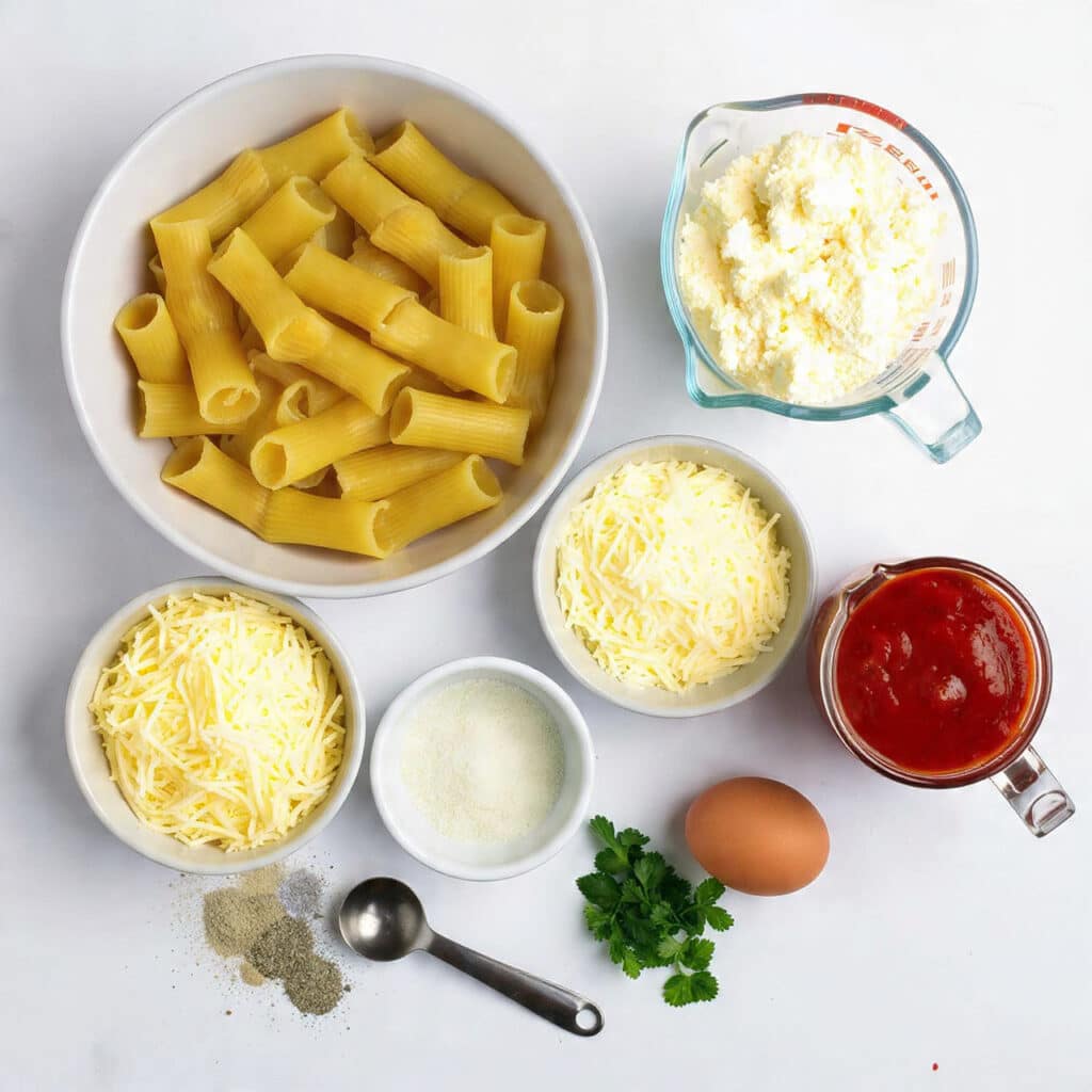 Every bite of this dish is packed with cheesy, saucy comfort. Here’s what you’ll need: