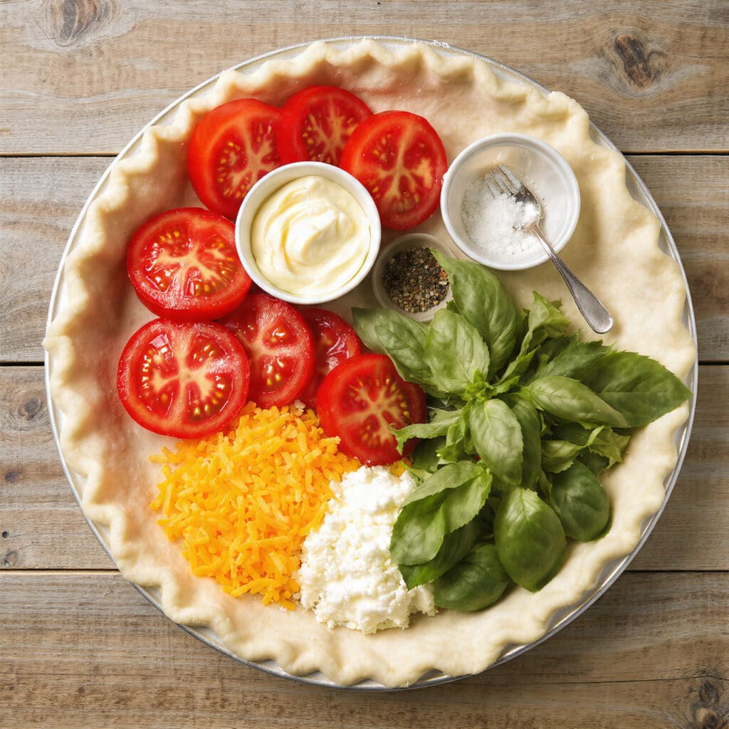 This tomato pie brings together simple ingredients in the most flavorful way. Let’s break down the essentials: