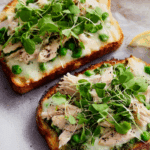 A crispy, melty, and herby twist on the classic tuna melt, this Tuna Melt with Green Goddess Peas combines creamy tuna, fresh green peas, and melted cheese between golden, toasted bread for the ultimate comforting yet refreshing sandwich.
