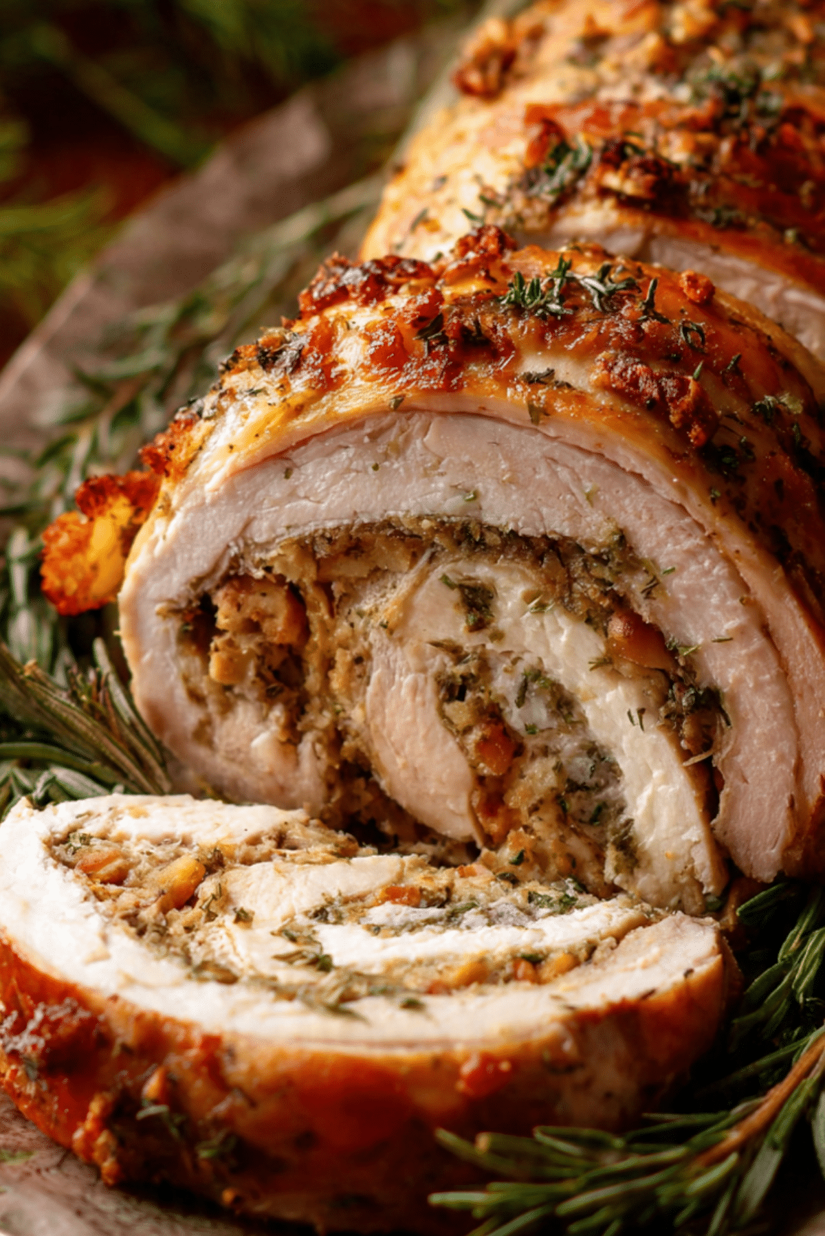 Keywords: turkey roulade, stuffed turkey breast, holiday turkey recipe, thanksgiving main dish, rolled turkey breast