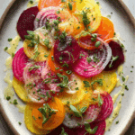 Imagine a plate of paper-thin slices of vibrant vegetables, dressed lightly with olive oil, speckled with herbs, and finished with just the right touch of cheese or crunch. That’s the beauty of Vegetarian Carpaccio. It’s light but full of character, simple but elegant, and brings freshness straight to your plate with every bite.