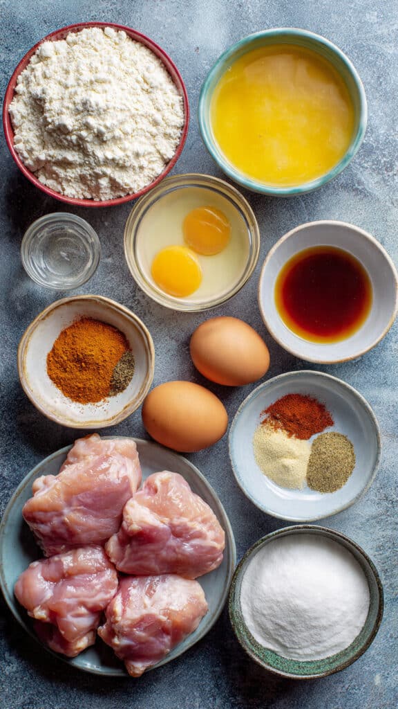 Chicken Thighs: Naturally juicy and forgiving, they stay tender even after frying.