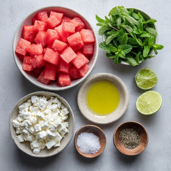 - Seedless Watermelon: 4 cups, cubed – Provides the juicy, sweet base and refreshing bite.