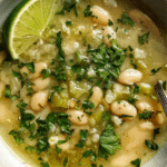 A zesty, comforting bowl of White Bean & Tomatillo Soup made with tender white beans, tangy tomatillos, and fresh herbs. Light, creamy, and packed with flavor, it’s perfect for any time of the year.