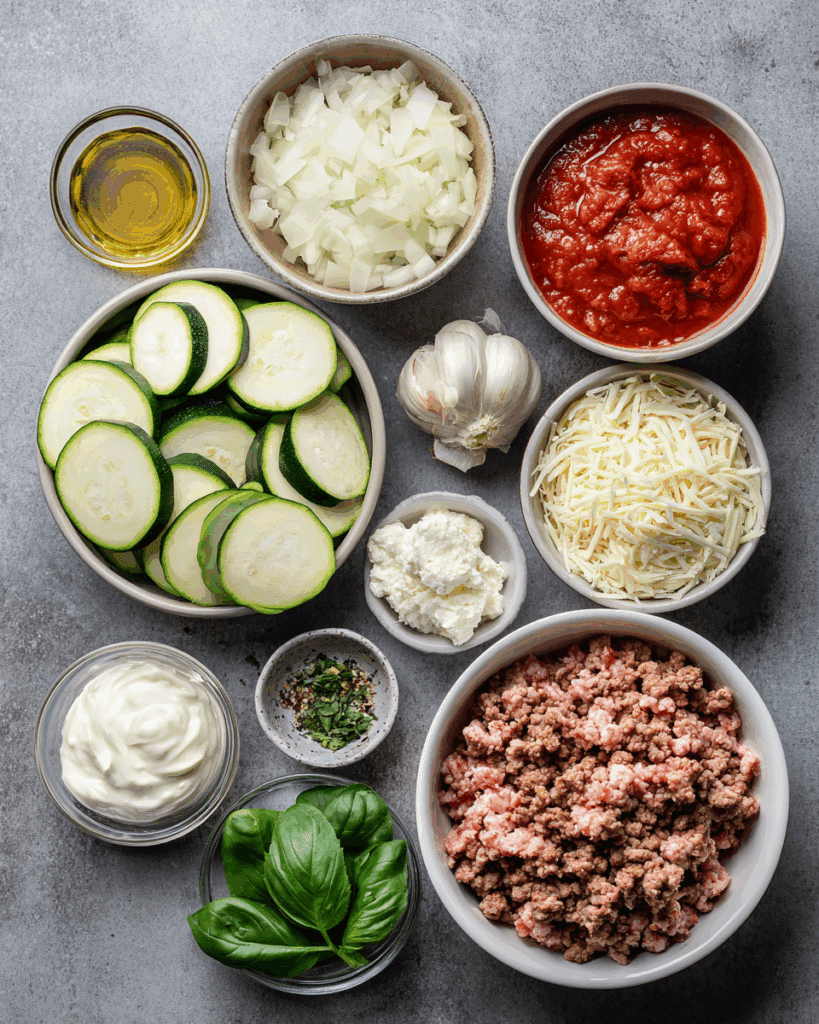 The magic of this dish lies in how fresh zucchini blends seamlessly with rich tomato and creamy cheese. Here’s what you’ll need:
